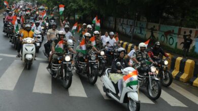 रिमझिम फुहारों के बीच हाथों में तिरंगा थामकर शान से निकली बाइक रैली